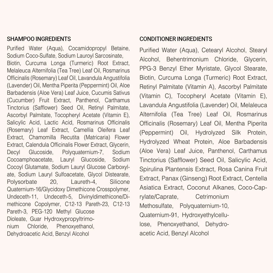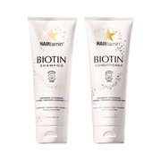 Infused with hair-beautifying Biotin and Botanicals, this gentle, yet powerful hair care duo works synergistically to help address hair and thinning, while protecting from everyday damage. A gentle, daily formula that helps clean and nourish your hair and scalp to promote stronger, shinier, and thicker-looking hair. Use it with your HAIRtamin® supplement regimen for a complete inner/outer approach to hair wellness.