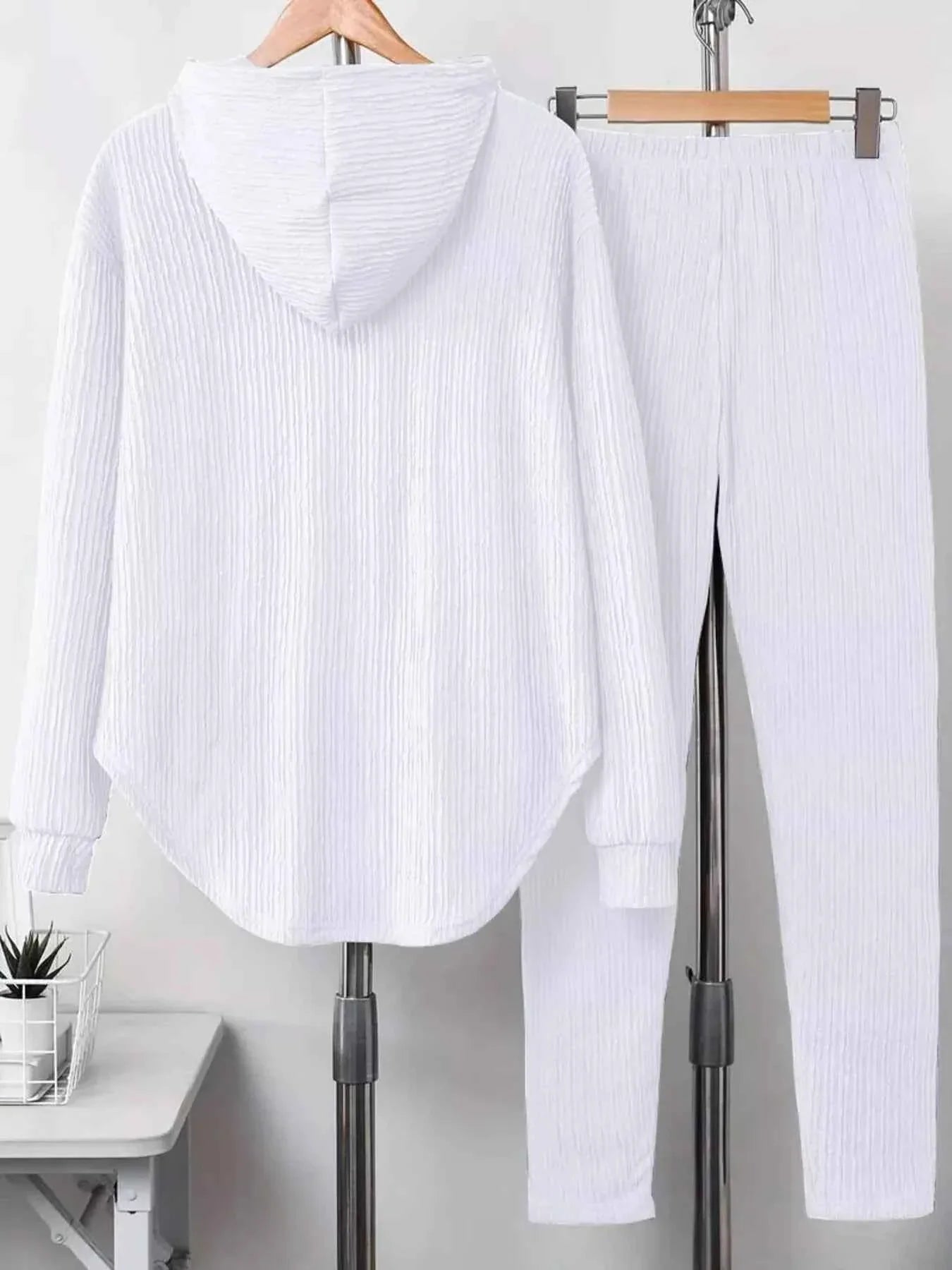 Elevate your comfort game with this textured long-sleeve hoodie and pants set—the ultimate pairing for effortless style. The hoodie's rich texture adds visual depth while the coordinating pants deliver a streamlined silhouette perfect for lounging or casual outings. Premium fabric construction ensures durability through countless wears and washes. Complete the look with matching pieces that work together seamlessly. Plus, enjoy free shipping on this set, making premium comfort more accessible than ever.